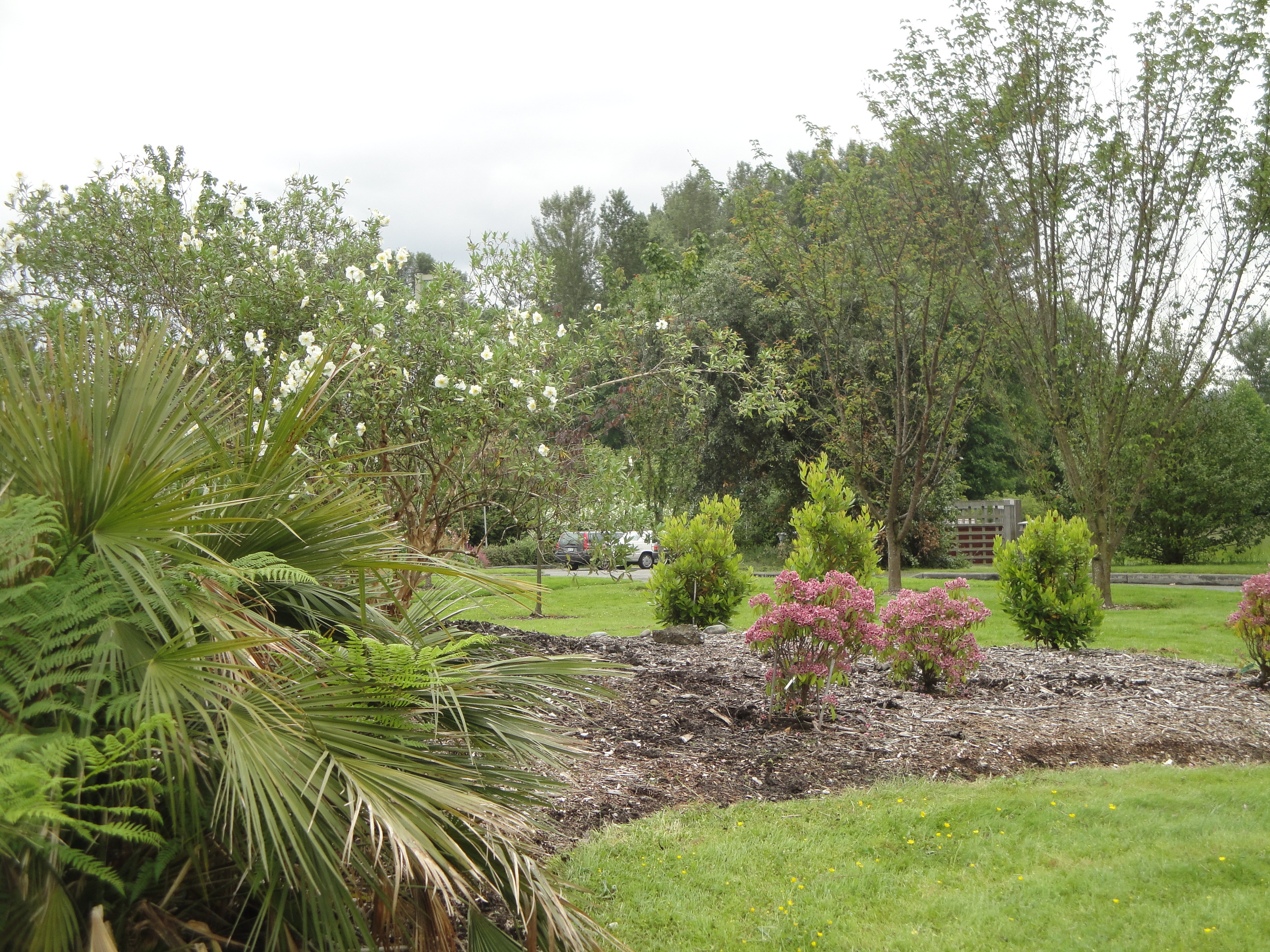 Recall that we transplanted a mature Carpenteria californica in this bed. It looks to have survived well and is in fine company with a stunning mountain laurel and several dwarf strawberry trees