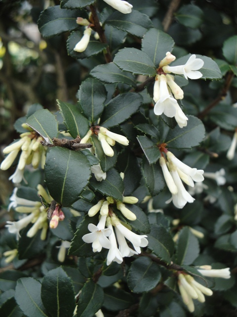 One of the most useful and attractive evergreen shrubs for the Pacific Northwest, this fragrant, spring blooming gem is hardy, easy to grow and highly adaptable to our climate. Left alone, it’s a loose and airy background shrub with clusters of densely packed tubular flowers in early spring. It also responds well to regularly pruning and shearing as a specimen or hedging plant. This is often done after flowering to stimulate growth that puts forth next year’s bloom.