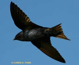 When (not if!!) the purple martins establish a colony at our site, we expect you will be able to see them all summer long, coursing over the waters of Yesler Cove in the heart of Yesler Swamp. Martins love to hunt for insects over water, and our site is perfect for them: far enough away from possible predators, close enough to a reliable food source, and within sight of comforting people (martins like us to be nearby).