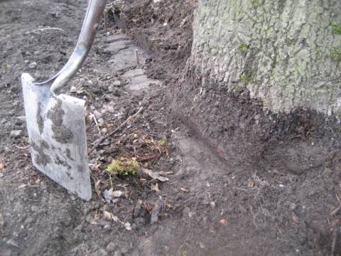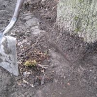 - Damage to scarlet oak root crown