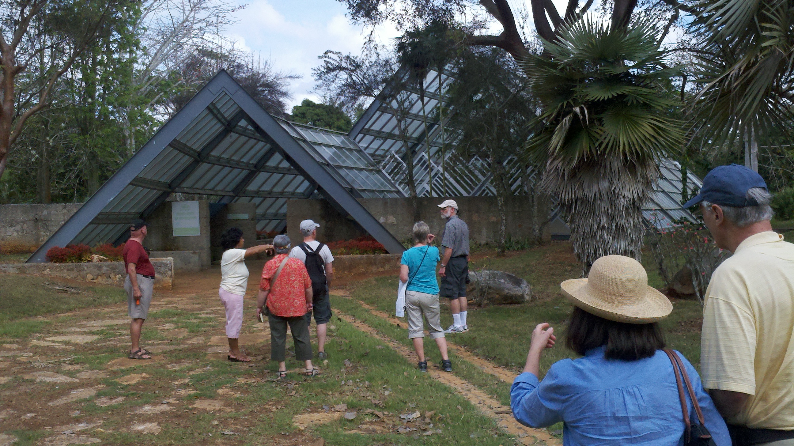 Our first stop that Sunday was at the National Botanical Garden. The director, Dr. Angela Leiva Sanchez, gave us a lecture on the plants and vegetation zones of Cuba that was very helpful in our interpreting what we saw on our later hikes. One of her staff then joined us on the bus as we toured the Garden. It is HUGE – about 600 hectares (1480 acres) so we only saw a small bit of it in our tour. Probably the most impressive part was the palm collection. They have over 200 species in their collection, making it one of the largest in the world. They also have a really lovely greenhouse area. Following our tour we went to their open air restaurant and had a wonderful buffet lunch – one of the best meals we had in Cuba! Many of our meals were short on fresh fruits and vegetables and this lunch had various salads and a large fruit plate.
