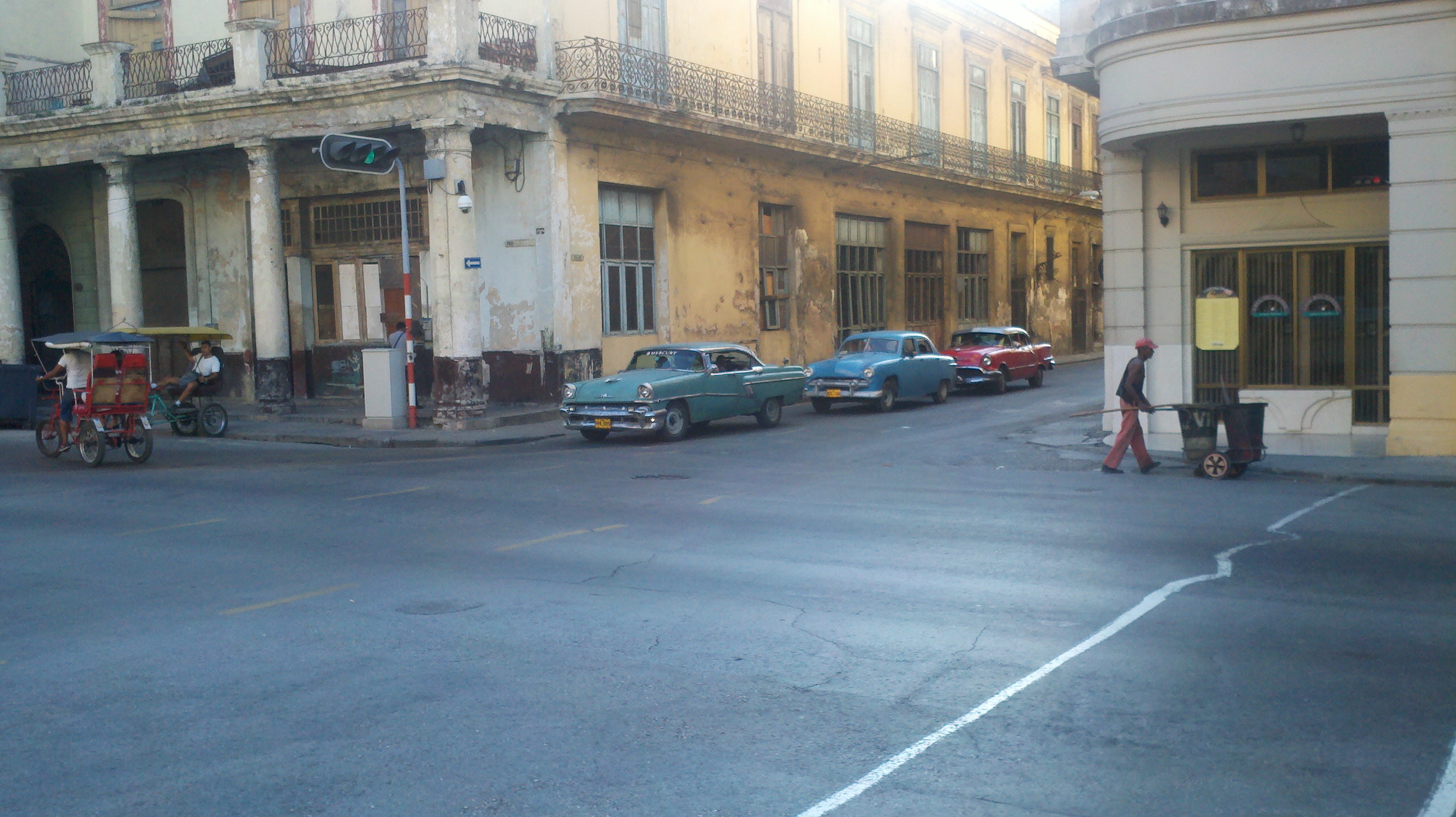We headed out of Havana early on a Sunday morning. This was really our first look at the countryside, and at the transportation system. The stories about huge numbers of old American cars from the 1950s? All true! Under Cuban law, cars registered after the 1959 revolution could not be bought or sold, though that is changing. The result is that those who had a car hung onto it and tried to keep it running, passing it down as an inheritance. Many of the cars we saw are Frankencars, with parts from various cars slapped together. Some were well-tended, others looked like they were held together with rust, and it was not uncommon to see one of them along the roadside with the hood up. I was on the lookout for a ’56 Mercury Monterey, like my grandmother’s old car that I drove in high school. Chevys seem to be the most common but I did see Mercurys, as well as just about any other model you can imagine.