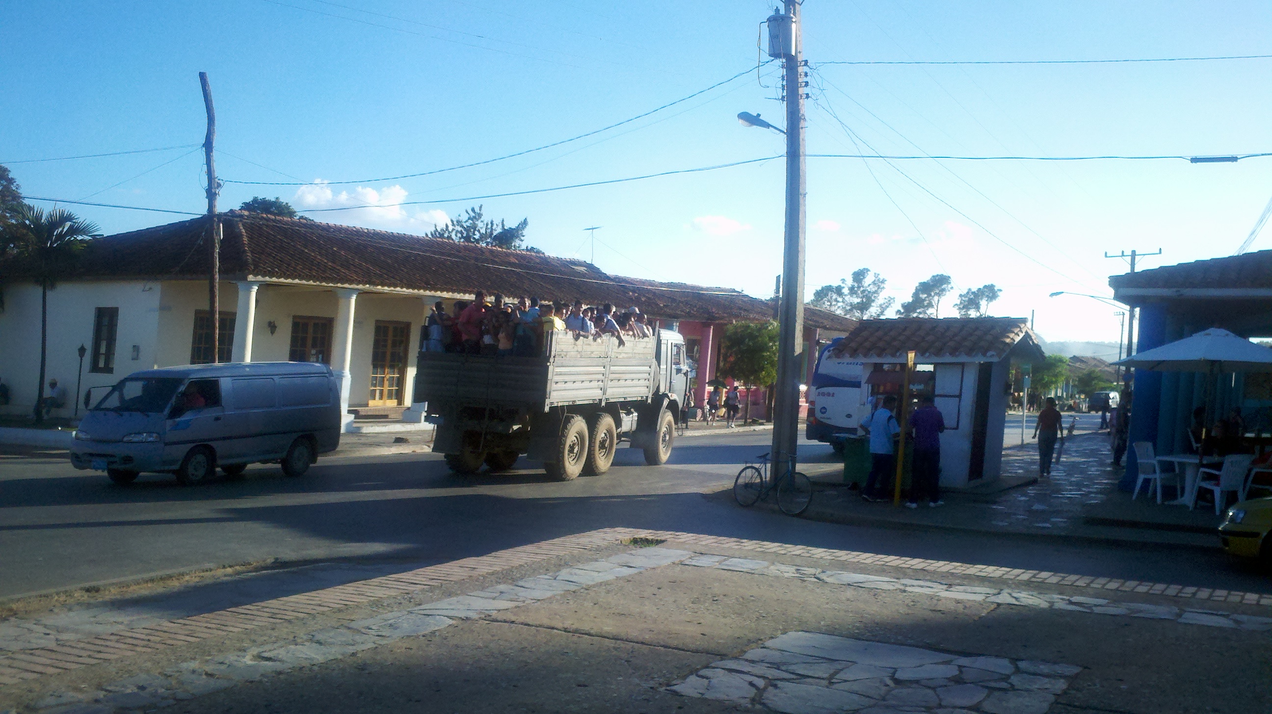 Only about 1% of Cuban people own cars, so other forms of transportation are common too. We saw lots of bicycles, including pedicabs. There were lots of horses with buggies too, especially as we got outside the city. We saw some recognizable buses, packed with people, but in the rural provinces, it is common to see people standing, jammed into the back of an open-air truck. In the countryside we also saw an interesting sight – most vehicles are owned by the state and at key intersections in the small towns we passed we observed an official dressed all in yellow stopping cars and trucks. Our guide, Frank, explained that all state vehicles had to give rides to citizens going in the same direction, so the man in yellow was coordinating ride-sharing.