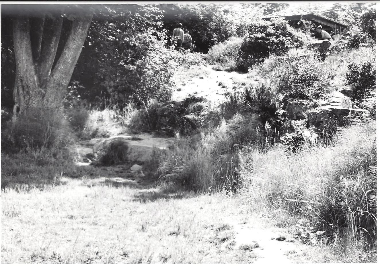 - The north bank of the Lookout in July 1967. Grasses and weedy plants choke the rockery. Photo by Brian O. Mulligan