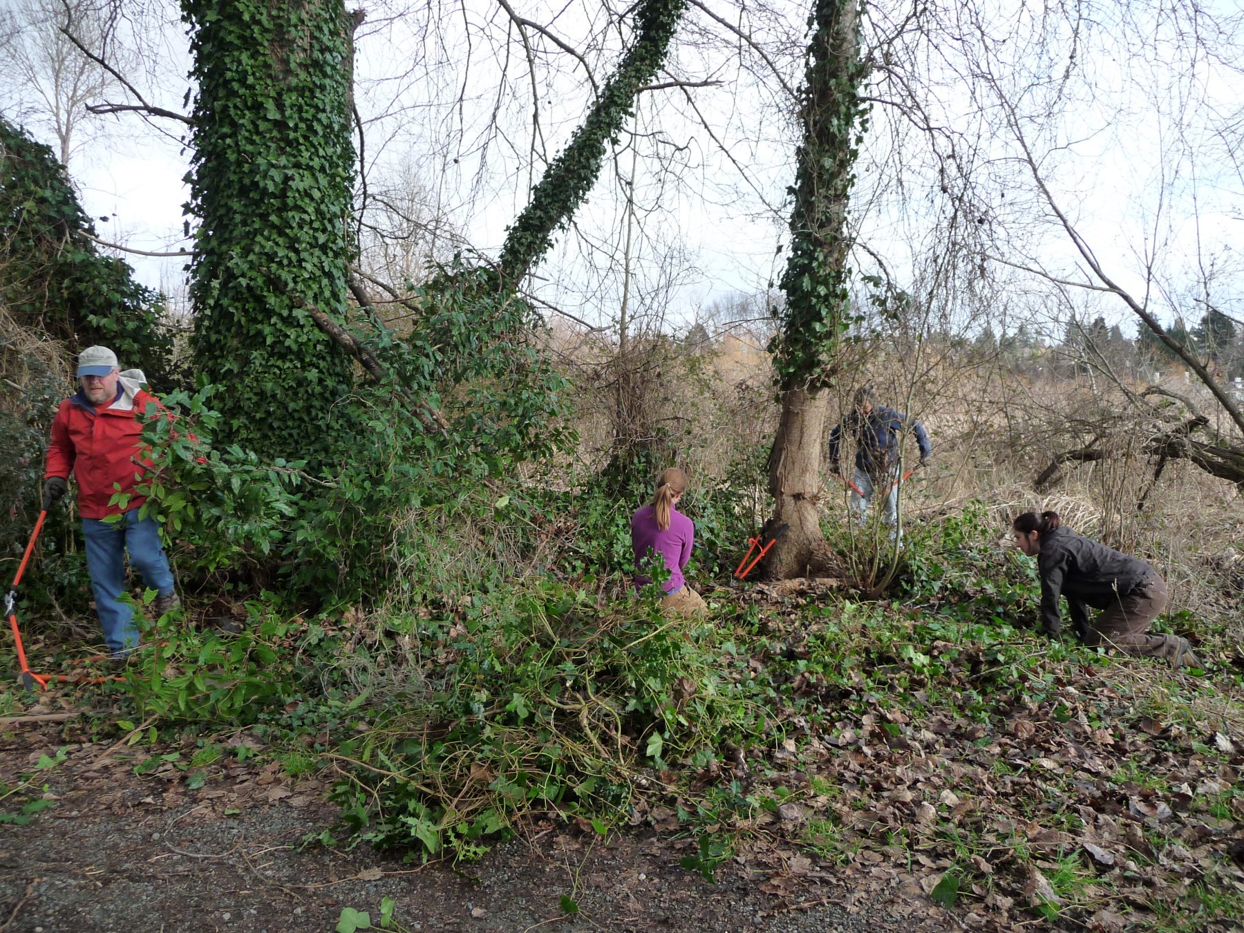 On Jan, 19, also known as the MLK Day of Service, a group of 7 volunteers helped remove ivy from cottonwood trees near the Union Bay Natural Area waterfront.