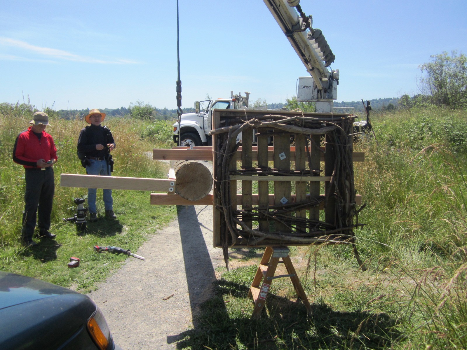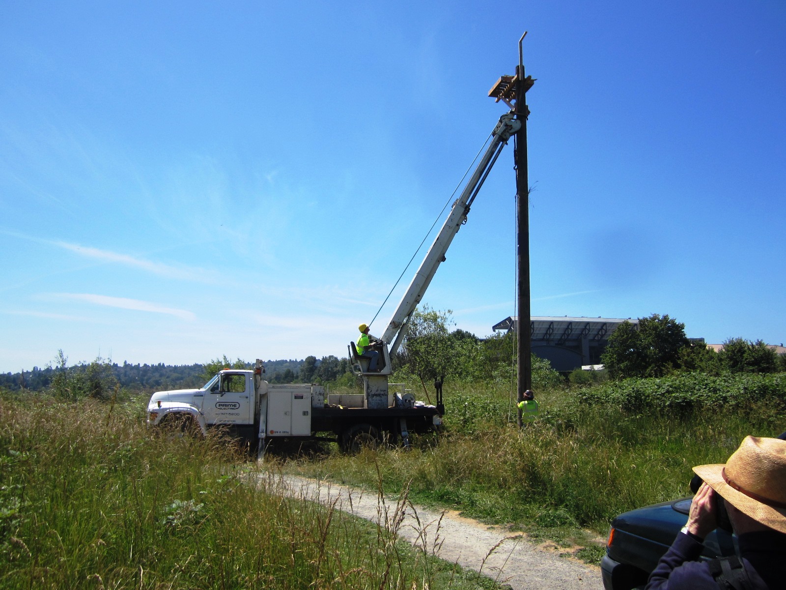 Jim Kaiser, consulting wildlife biologist and owner of Osprey Solutions, was hired to do the install. Jim has installed over 300 Osprey nesting poles in the PNW. He is one of the most knowledgeable biologists on Osprey and has quite a fascinating and experienced repertoire in creating new homes for them.