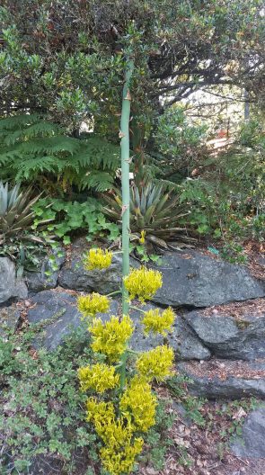 This plant came to my full attention when it recently flowered. Of course I had to find out more and started research which turned up stories on historical plant collections, tequila production, semelparity in reproduction, and the ethnobotany of the agave. I also established a ‘flower watch’ regimen in June and started featuring the plant on many public tours.