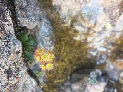 While clinging to an exposed ledge looking for Tisch’s saxifrage (Micranthes tischii), a very charming saxifrage, I realized the lengths I would go to just to look at plants. I found I had a healthy respect for heights, but was able to forget how high up I was when I finally saw its ruffled, waxy leaves tucked into a rock crevice.