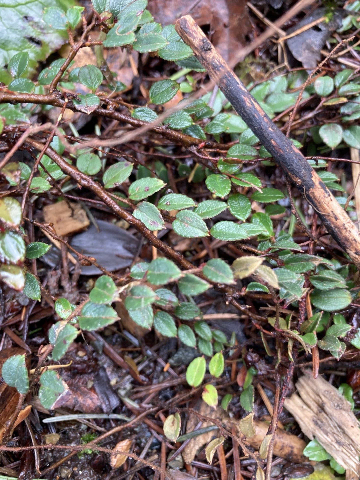 Less well known are two other Northwest natives, Gaultheria humifusa and Gaultheria ovatifolia. Gaultheria humifusa is an adorable groundcover with small evergreen leaves and bright red berries. One specimen can be seen at the high point in the Cascadia Forest. Gaultheria ovatifolia is somewhere between these other Northwest species, with leaves and growth habit smaller than G. shallon but larger than G. humifusa. To make matters more complicated, G. humifusa and G. ovatifolia are known to hybridize where their ranges overlap. I collected G. ovatifolia seed on a backpacking trip this summer, and the resulting plants should be ready to install in the Cascadia Forest in the next couple years.