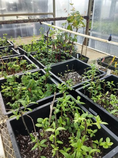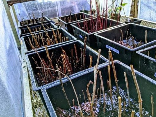 This year coppicing was done in February, after which the harvested stems were made into 6-8” cuttings and potted up in the greenhouse. In April, after growing enough roots to pass the “tug test”, they will be transplanted into individual pots and in Fall 2021 they will be ready for planting in the ground.