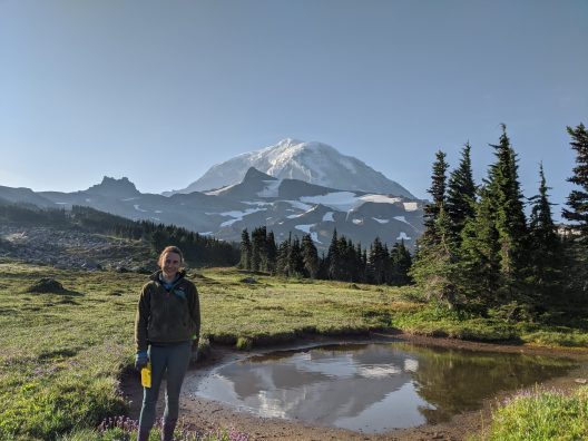 To conclude the season we headed to Mount Rainier National Park. This was also my first time in the area. Since I moved to Washington, I have heard so many great comments about this park. Let me tell you, they are all true. We only visited one site. But Oh My, was it beautiful. For this mission we were in charge of finding curved woodrush (Luzula arcuata ssp. unalaschensis). This plant hasn’t been seen since 1919. The one herbarium specimen was collected by Flett, which happened to be the same guy they named the Flett Glaciers after. Unfortunately, we were unsuccessful in finding the curved woodrush. Rain, wind, fog and low temperatures did not make our job any easier. The weather was not on our side the first day, but it was sunny and warm the next day. With the sun in the background Mount Rainier was doing its thing of looking giant and gorgeous. I promised myself that I am going to bring all my friends here. The view from Spray Park is amazing.