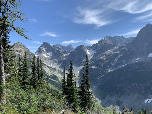 However, that doesn’t adequately sum up what this internship entailed. First, we were given a lot of independence with this position. At the beginning of June, my coworker Jaileen and I were given a GIS file, a list of the sites we needed to go to, and which plants needed permanent plots. The rest, like renting a car, determining the trail to get there, obtaining the appropriate backpacking permits, learning where the plant or plants were last seen, and most of studying how to identify the target plant, was up to us. Second, words cannot describe how spectacular our office was this summer. The 360 degree views of glaciated mountaintops that came as a bonus with almost every site we monitored this summer were a constant reminder of how lucky I was.