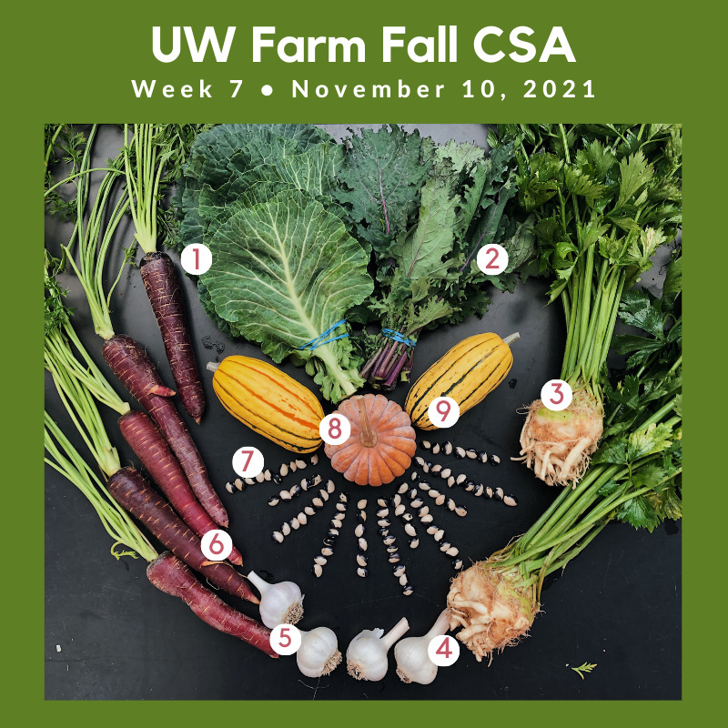 CSA Veggie Photo and Key: Sophia Falls, UW Farm student staff, CSA lead