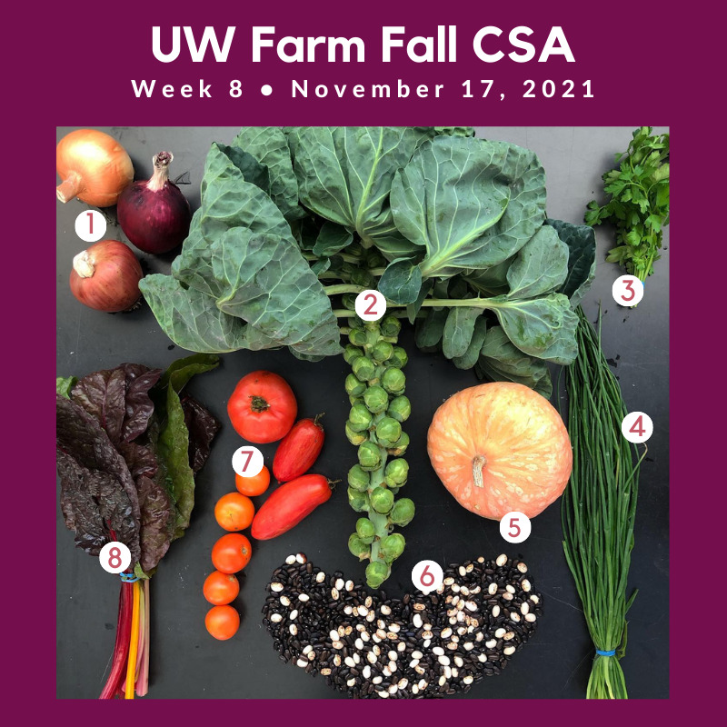 CSA Veggie Photo and Key: Sophia Falls, UW Farm student staff, CSA lead
