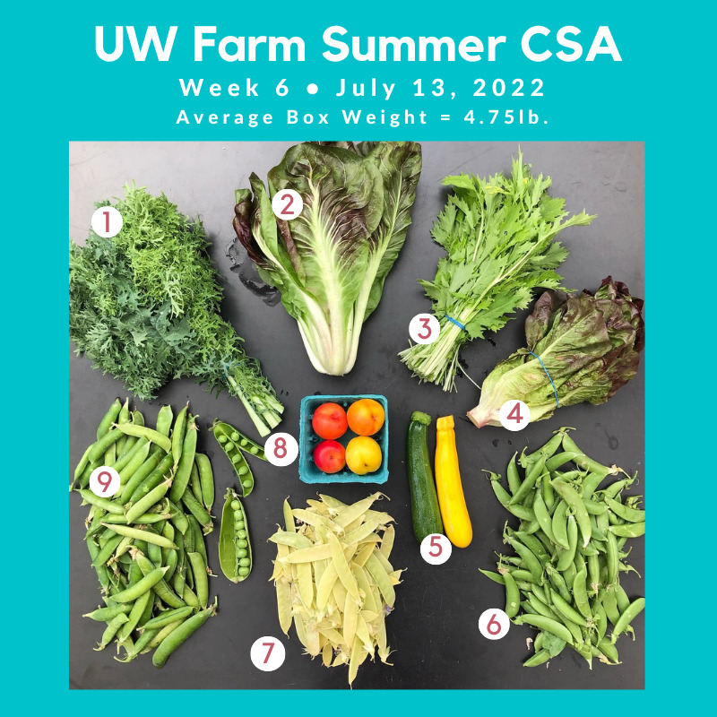 Correction to Last Week's Issue, July 6, Around the Farm Section, fourth paragraph, "While we delivered 1,193 pounds, or nearly 2 tons of our organic, locally grown food to the pantry, much of the discussion and continued work in our partnership has centered on educational resources for pantry users and volunteers." This should have read, "over a half a ton of our organic, locally grown food to the pantry…." We apologize for the miscalculation. The amount represents off-season and shoulder-season amounts. It is estimate that the UW Farm will donate nearly 2 tons to food banks by the end of 2022. The campus farm also sells to UW Dining outlets and runs a CSA program for households. Last season, January 1 to December, 31, 2021, the UW Farm delivered 5035.77 lbs of produce to the UW Food Pantry.
