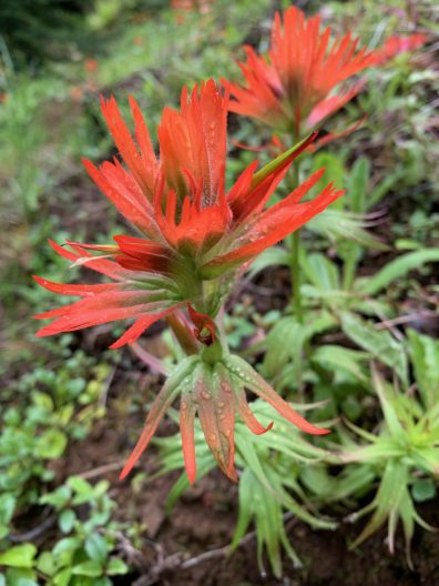 If you have the fortune to be botanizing in southwest Washington, you might have the chance to encounter one of Washington’s rare paintbrush species. At first glance you might think this is the common, harsh paintbrush (Castilleja hispida) since both species have the same vibrant, orange-colored bracts and both are found at low to mid elevations. But it is in fact Chamber’s paintbrush (Castilleja chambersii), and when you look more closely at the leaves, you will see what is so unusual about this species. The leaves are alternate, sparsely hairy or glabrous, and deeply lobed, with the 3-7 (or more) lobes erect to ascending, linear to lance-shaped, and pointed at the tip.