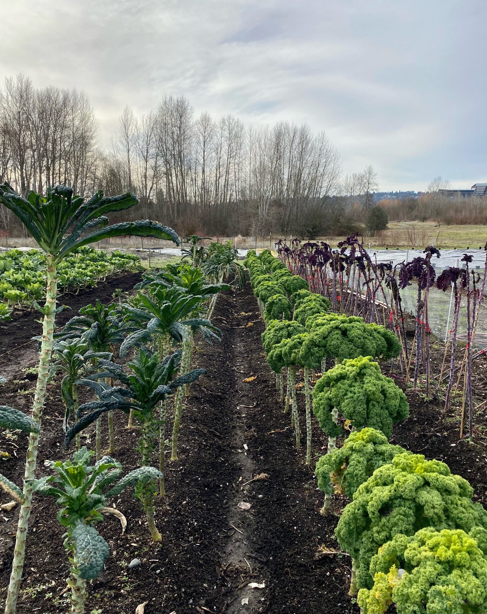 The 'Darkibor' green kale is one of the only harvestable crops still growing at the farm site at the Center for Urban Horticulture. Its ruffled leaves come in various shades of light to dark green and some wilt in strong windy weather. Different varieties of kale are able to withstand the mild Pacific Northwest Maritime winter and continue to grow, while other varieities, such as 'Scaret' and 'Toscano' are not as hardy or cold tolerant. I notice that that the grey sky above makes the green kale on the farm stand out or "pop."