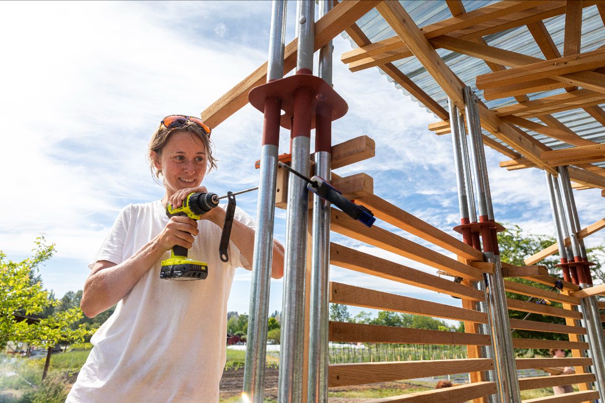 The COVID pandemic also demonstrated the need for more outdoor spaces, considered safe for people to gather. Shelter from the PNW weather is hard to come by on the campus farm. The new covered structure hopes to help protect students and visitors in our increasingly unpredictable weather.