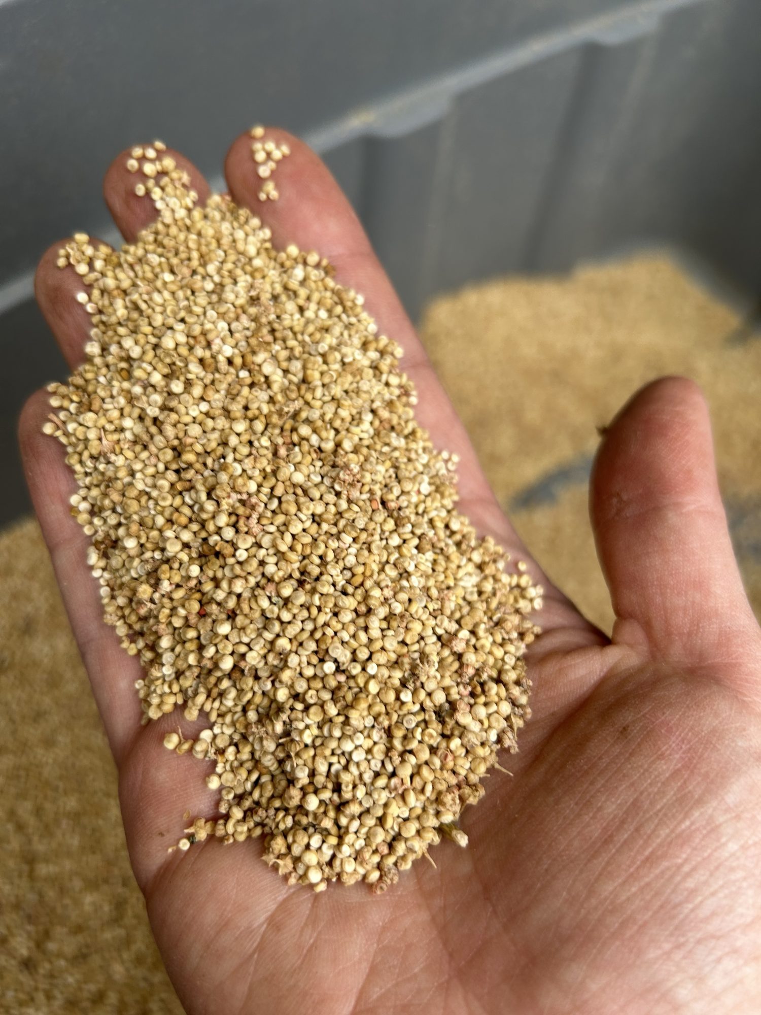 The last step in our quinoa process is to prepare the quinoa seeds for consumption! When buying quinoa from a store, the industrial threshing/winnowing process is far more accurate than the hand-powered processes we completed. To make sure the quinoa is ready to eat, we recommend soaking the quinoa in a bowl of water right before cooking it. The seeds will absorb some water and sink to the bottom, and any remaining chaff or dust will float to the top. Once all the quinoa seeds have sunk to the bottom of your bowl, skim the surface of the water to remove the last of the chaff. Drain your water and add the quinoa to a pot of boiling water or your choice of stock. In 10-15 minutes you will have fluffy, home-grown, quinoa to enjoy in your favorite recipe.