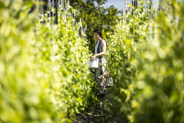 Tomatoes are a popular plant grown by home gardeners. They are versatile and relatively easy plants to cultivate and can be space-efficient, often grown in pots or small garden beds. On a larger scale, like at the UW Farm, tomato plants are started in individual pots and then are transplanted, where they grow much larger on trellises throughout the summer. In the Pacific Northwest, tomato plants can be affected by many common pests, such as tomato hornworms, flea beetles, and Western flower thrips. Basil plants contain compounds that naturally repel these pests, so basil was grown at the farm as a companion plant between the tomatoes.