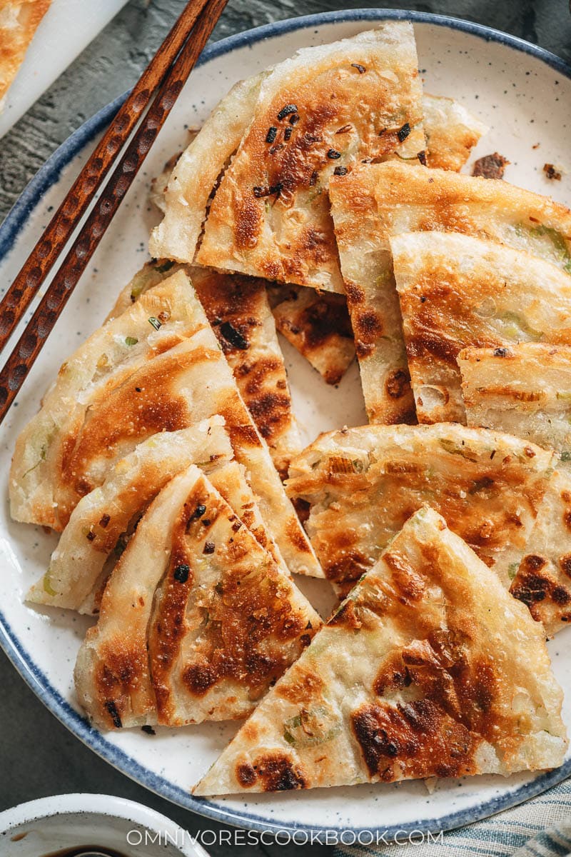 Scallion pancakes, a favorite in dim sum, are super crispy and flaky on the outside, yet slightly chewy inside. They make a wonderful snack that you’re sure to love!