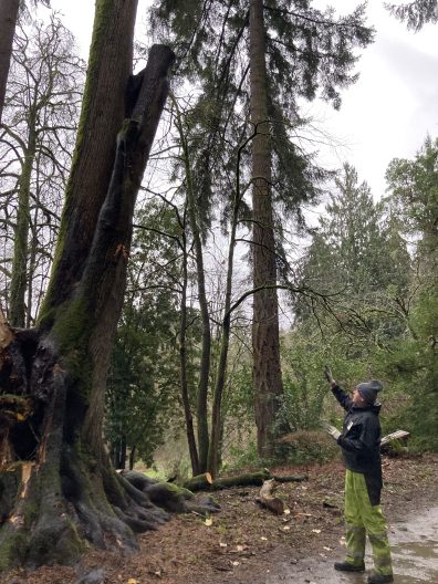 Lincoln’s care and attention to each tree is evident in his work. On our walk he pointed out the beautiful green bark of an Acer rufinerve (redvein Maple) planted as a memorial tree by two parents whose young son had passed away. Lincoln carefully prunes the surrounding evergreens to allow more light to reach the maple, honoring the tree’s significance while preserving its health. Removing a branch or an entire tree is never a simple task in an arboretum packed with rare and special plants; it takes very skilled arborists to ensure no harm comes to neighboring trees and understory plants.