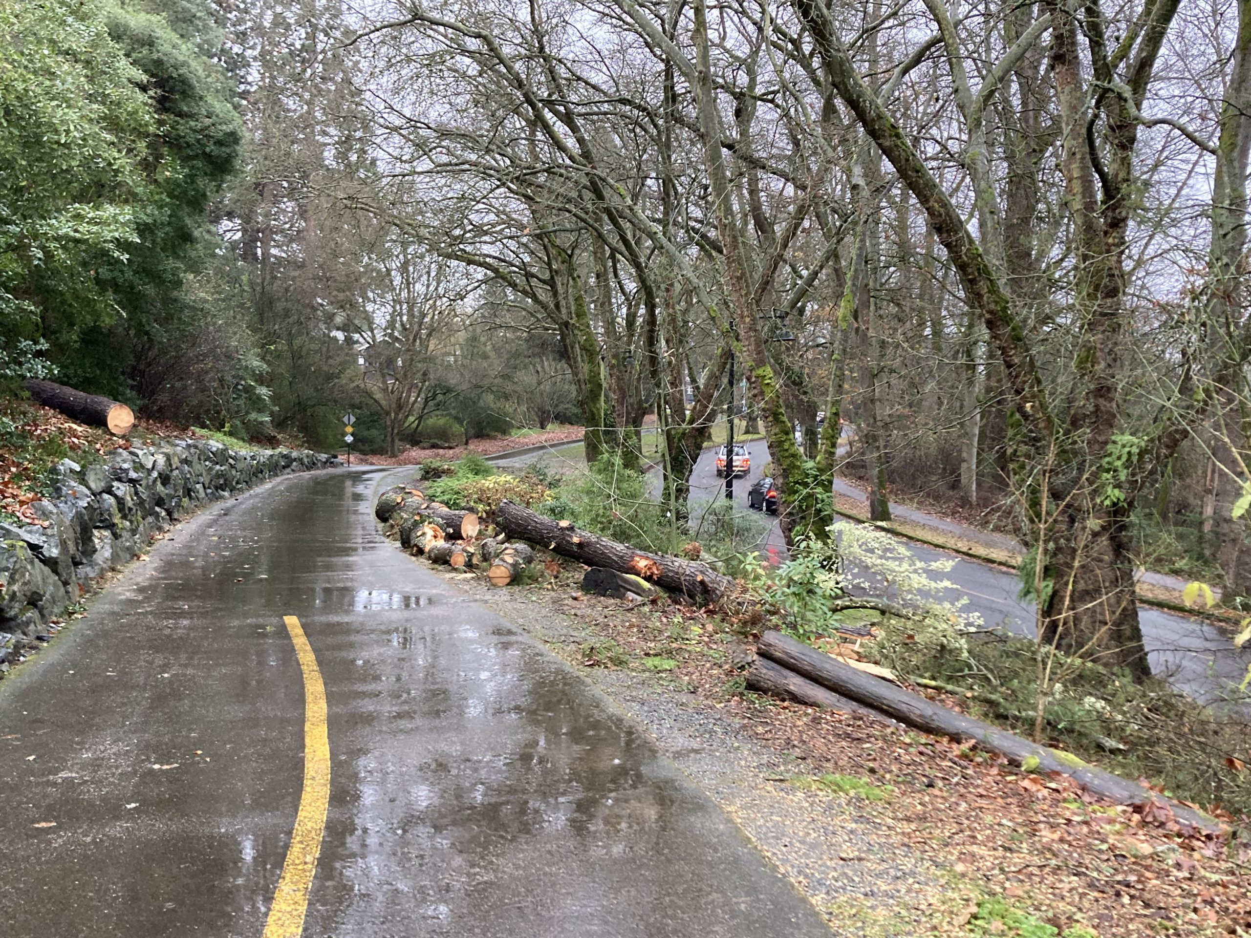 This attention to detail becomes even more critical when unexpected challenges arise. Take, for instance, a major storm in December 2024, during which the Green Bay Packers were beating the Seattle Seahawks in football. Lincoln is from Green Bay, Wisconsin, a town where football is life. Though he is fiercely loyal to the Packers, his commitment to his work came first. Knowing that the storm knocked down a 50-foot white pine in the Arboretum, he wisely decided to turn the game off early and get a good night of sleep; the next day his team would need to act swiftly to reopen the Arboretum Loop Trail for public access. When Lincoln arrived near the Stone Cottage, fellow arborist, Shea, had already set up safety precautions by closing the trail under the fallen tree and setting up detour signs around the area. The pine was precariously suspended above the trail, held up by the limb of another tree. The plan was for Lincoln to climb a nearby tree to secure a pulley, allowing the team to carefully lift the tree and begin the process of chain sawing it into logs. But just as the horticulture crew began setting up their worksite, a runner ignored the trail closure, ran past the danger tape and detour signage, and ventured under the suspended tree. Lincoln spotted the runner and immediately shouted for them to move. Within seconds, the tree cracked loudly and came crashing down to the ground. Fortunately, no one was hurt, but it was a close call. “How rowdy is that?” he laughs, recalling the event. This serves as an important reminder to heed all trail closures and detours in the Arboretum, as they are set up for public safety.