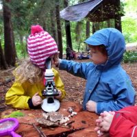 - Children and teachers following the sound of alarming crows to discover a young Cooper’s hawk or owl in the branches of a Douglas Fir Tree. Later, the students will process the morning’s lessons by incorporating the experience into their own play or recording it in a waterproof nature journal.