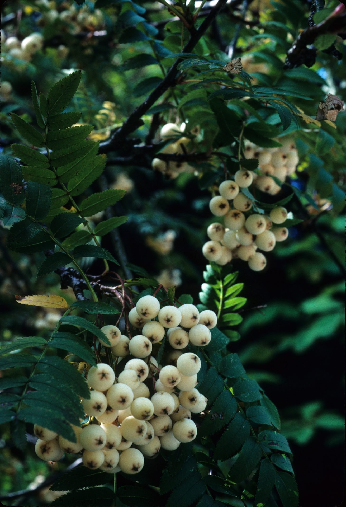 Gardeners plant mountain ashes for their ornamental leaves and fruit. The leaves are entire or pinnate and take on beautiful hues in autumn. The pinnate-leaved species look similar to the compound leaves of the true ash (Fraxinus spp.), which is how the mountain ash acquired its common name. The clusters of fruit, which look like berries but are actually pomes (see Hawthorns for an explanation of pomes), may be white, yellow, orange, pink, red or brown depending on the species or cultivar.